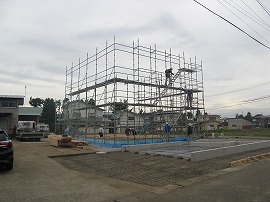 <外部足場組立中> <10月末より鉄骨建て方が始まります>