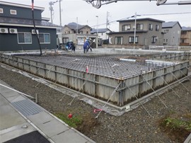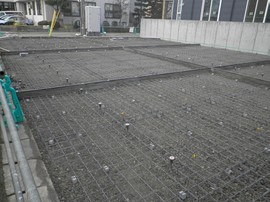 <外構土間コンクリート下地(消雪配管あり)> <外構土間コンクリート打設>